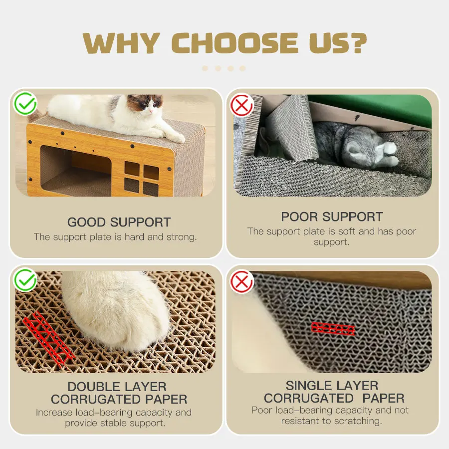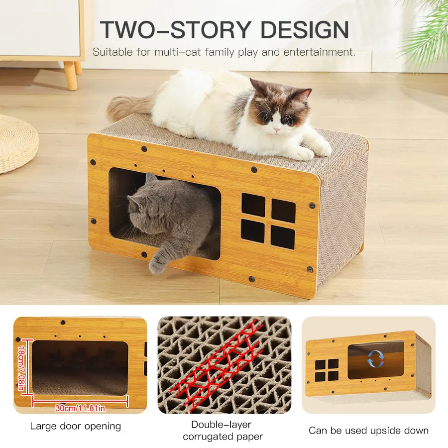• 2 w 1: domek i drapak – konstrukcja umożliwia kotu zarówno odpoczynek, jak i ostrzenie pazurów.